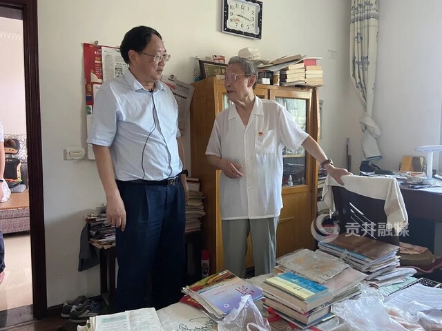 图:自贡市检察院检察长、市江姐故里红色教育基地项目建设领导小组副组长、办公室常务副主任、史料收集组组长黄国清率队到杨俊生老人家中慰问