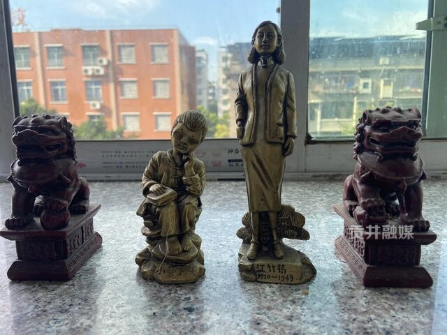 图:杨俊生家中的阳台上摆放着江姐和小萝卜头的雕像