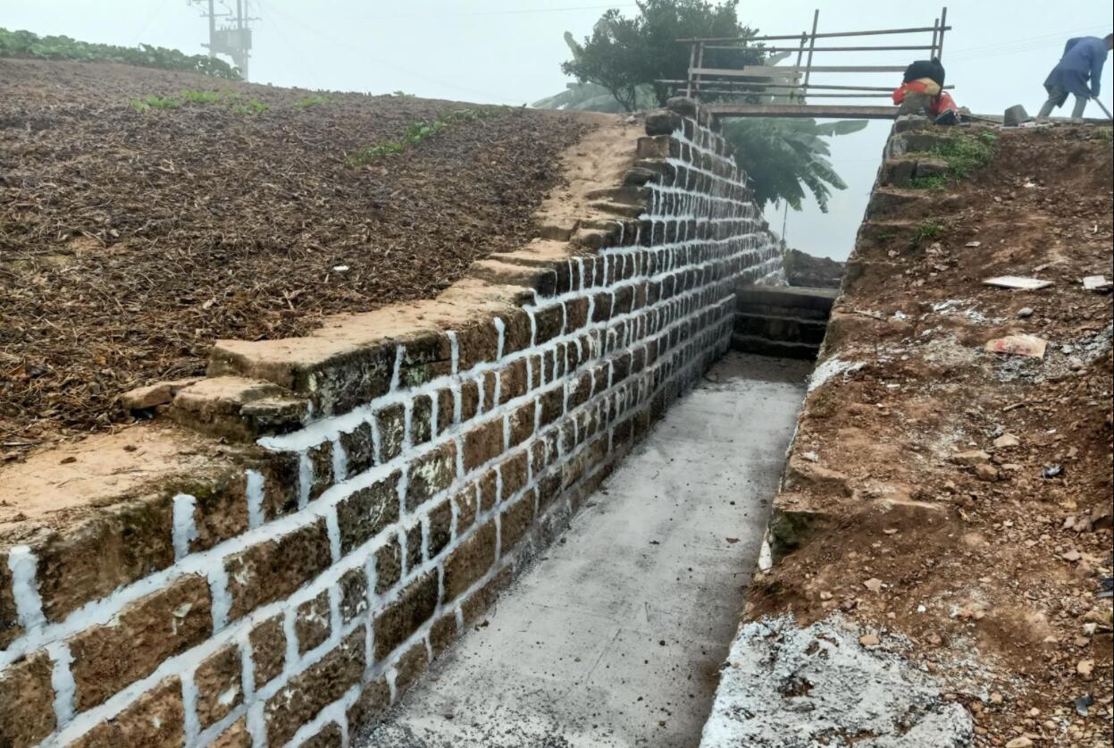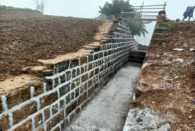 在艾叶镇的骑龙村,一座山坪塘整治工程已经进入收尾阶段,两百多米的挡土墙建设完成,通过整治,蓄水量大大增加,周边两个村的农业生产用水有了保障。