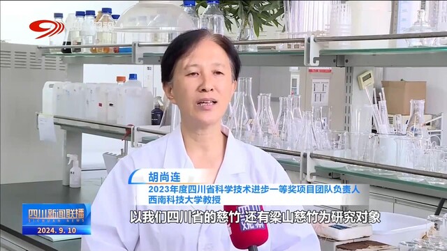 2023年度四川省科学技术进步一等奖项目团队负责人、西南科技大学教授 胡尚连:以我们四川省的慈竹、梁山慈竹等为研究对象,开展竹子的创制研究。我们就用基因工程的一些办法,来想如何改良这个竹子。另一方面,就用离体突变的办法,把竹子的这个基因给它突变,然后我们找那些可以材用的这样的新品种出来。