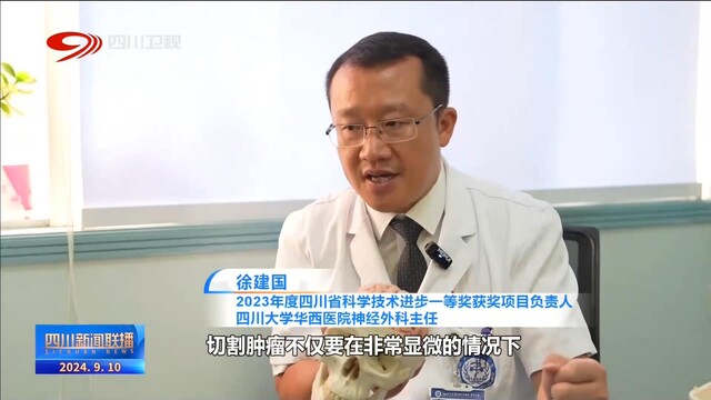 2023年度四川省科学技术进步一等奖获奖项目负责人、四川大学华西医院神经外科主任 徐建国:切除肿瘤不仅要在非常显微的情况下,把血管、神经看清楚,还需要我们非常高超的技术,把肿瘤切掉,把这些神经血管还要保护下来。难治性颅底肿瘤我觉得未来的路还很长,我们还要继续沿着这个方向耕耘,把它应该做得更好。