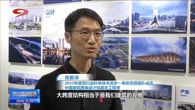 2023年度四川省科学技术进步一等奖项目团队成员、中国建筑西南设计院副总工程师 向新岸:大跨度结构相当于是我们建筑的骨骼,它承载了整个建筑的荷载,能够保证建筑能够站立起来。我们的项目成果广泛应用于200余项重大工程项目中,包括大运会的开幕式场馆、成都东安湖体育场。