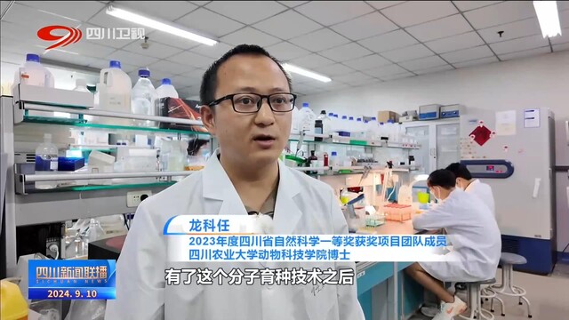 2023年度四川省自然科学一等奖获奖项目团队成员、四川农业大学动物科技学院博士 龙科任:有了这个分子育种技术之后,我们就可以在猪比较小的时候,通过基因型对它的表型进行一个预测,结合中国地方猪和外种猪它们各自的优缺点,然后去扬长避短,能够生产出既生长速度快产肉量高,又同时肉质性能也优良的猪种。