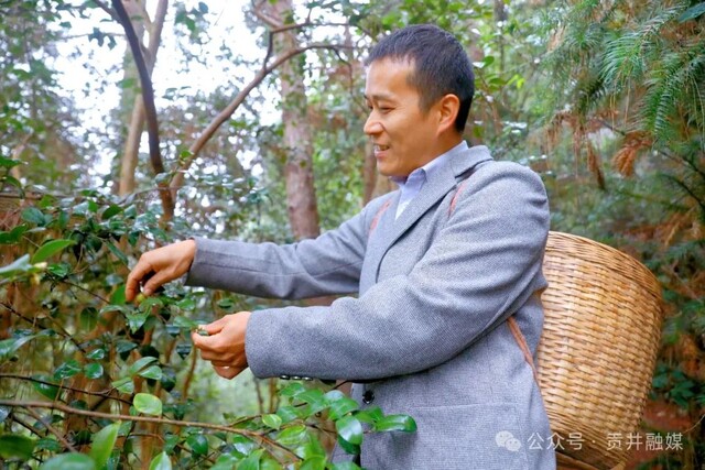 在村民刘代相的林地,他正忙活着穿梭在油茶林里,娴熟地采摘成熟的油茶果,不一会儿,果筐便被装得满满当当。
