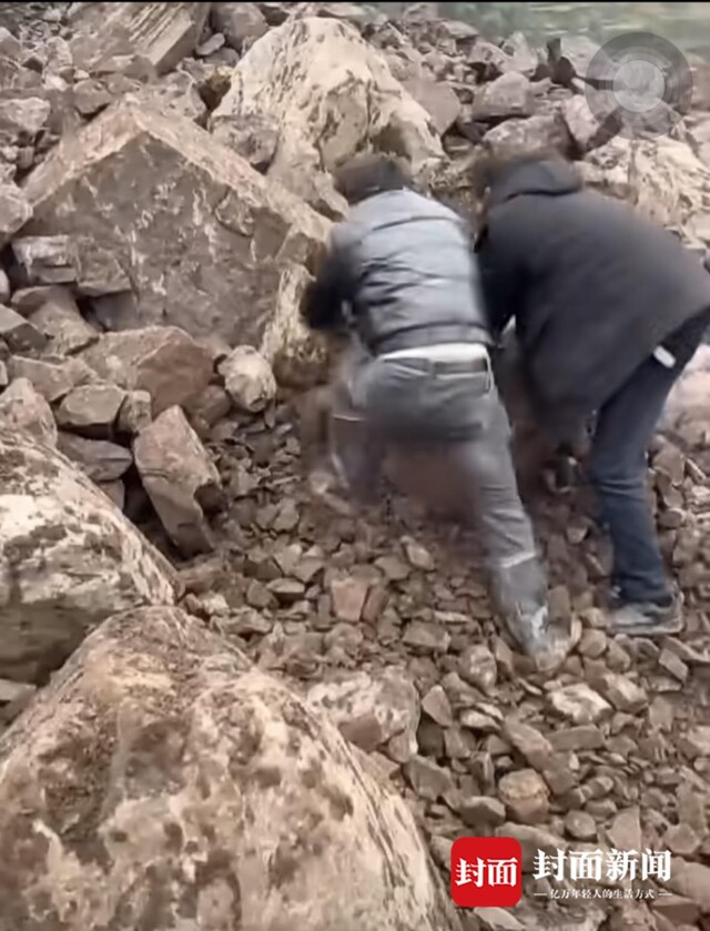 在官方救援力量赶到之前,金坪村的村民也在积极自救。有人用铁锹撬开瓦砾,用钉耙刨开碎石,但更多的村民徒手搬开巨石。