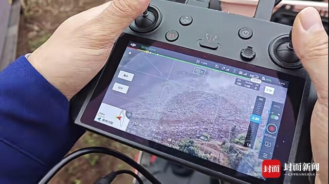 工作人员利用无人机进行现场观察。