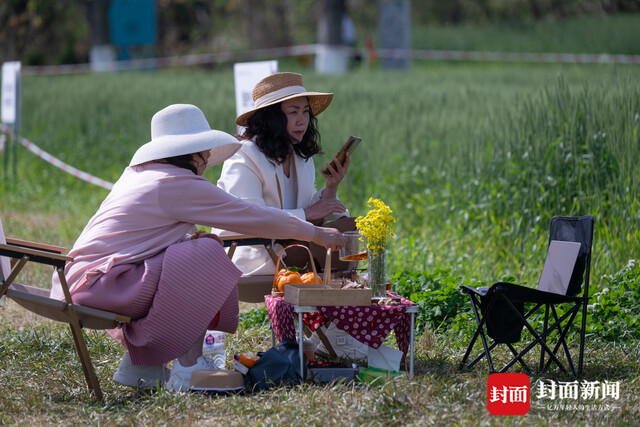 成都地铁2号线大面铺站附近,游客在麦田边休闲。