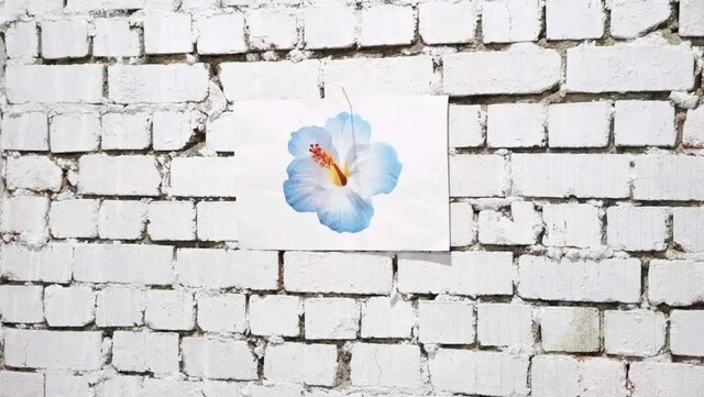 一堵灰墙上赫然绽放着一朵手绘木槿花,这是南希在村里闲逛时,迸出的灵感。蓝白花瓣如喇叭般怒放在砖缝间,碰撞出木槿的荒芜与绚烂。